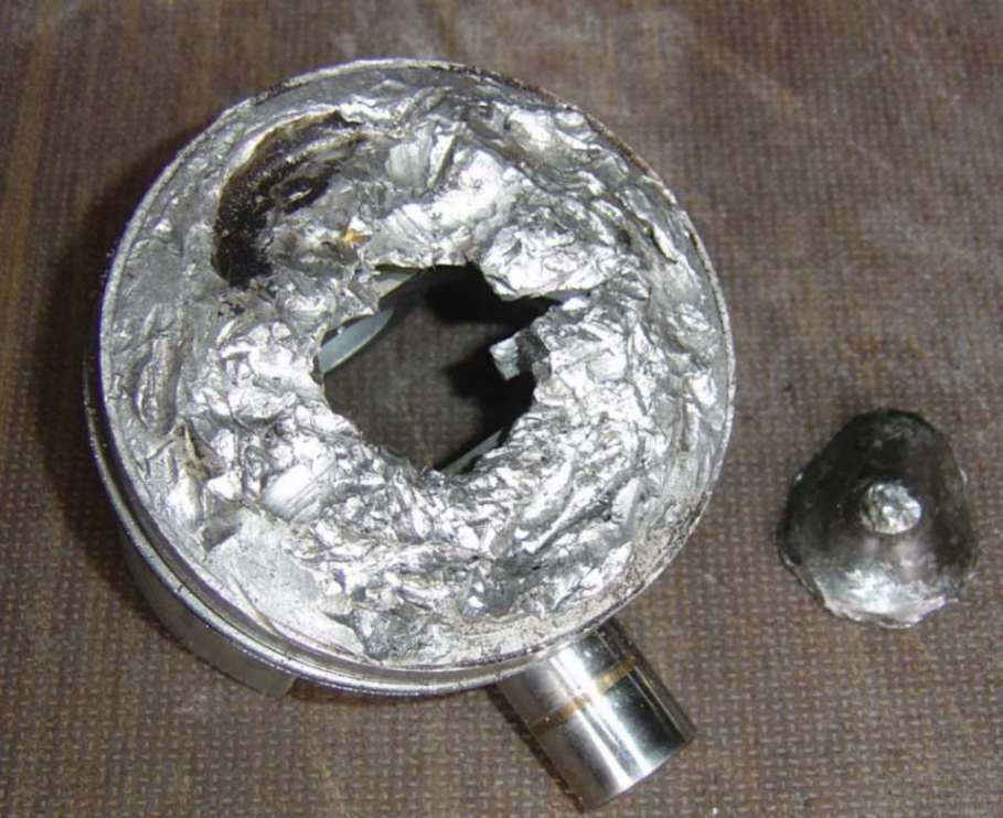 A badly damaged R25 piston